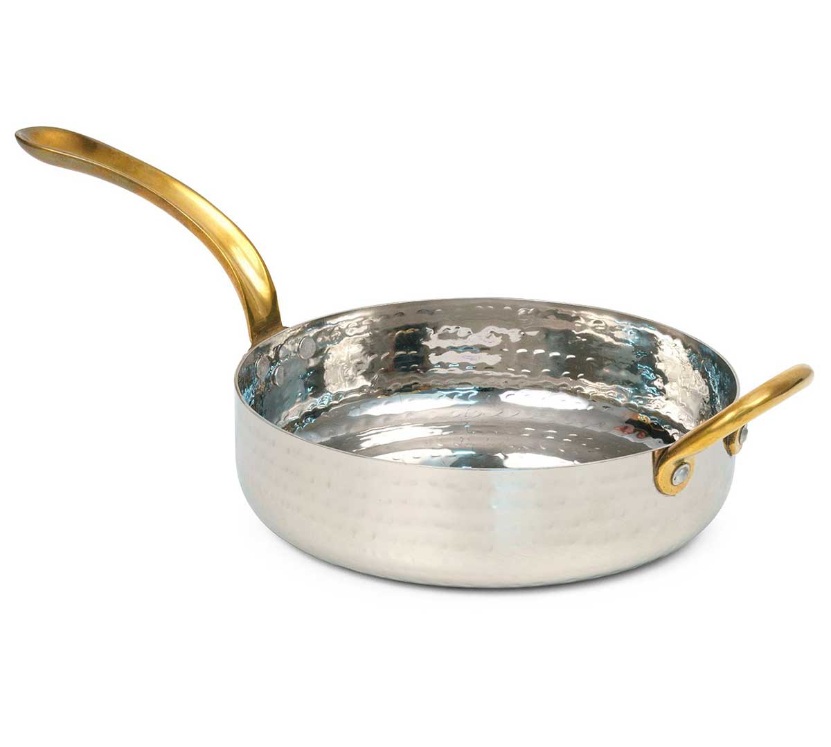 La Mini Sartén Redonda de Pujadas es ideal para presentación de platos. Tiene un estilo muy elegante en dorado y plateado.