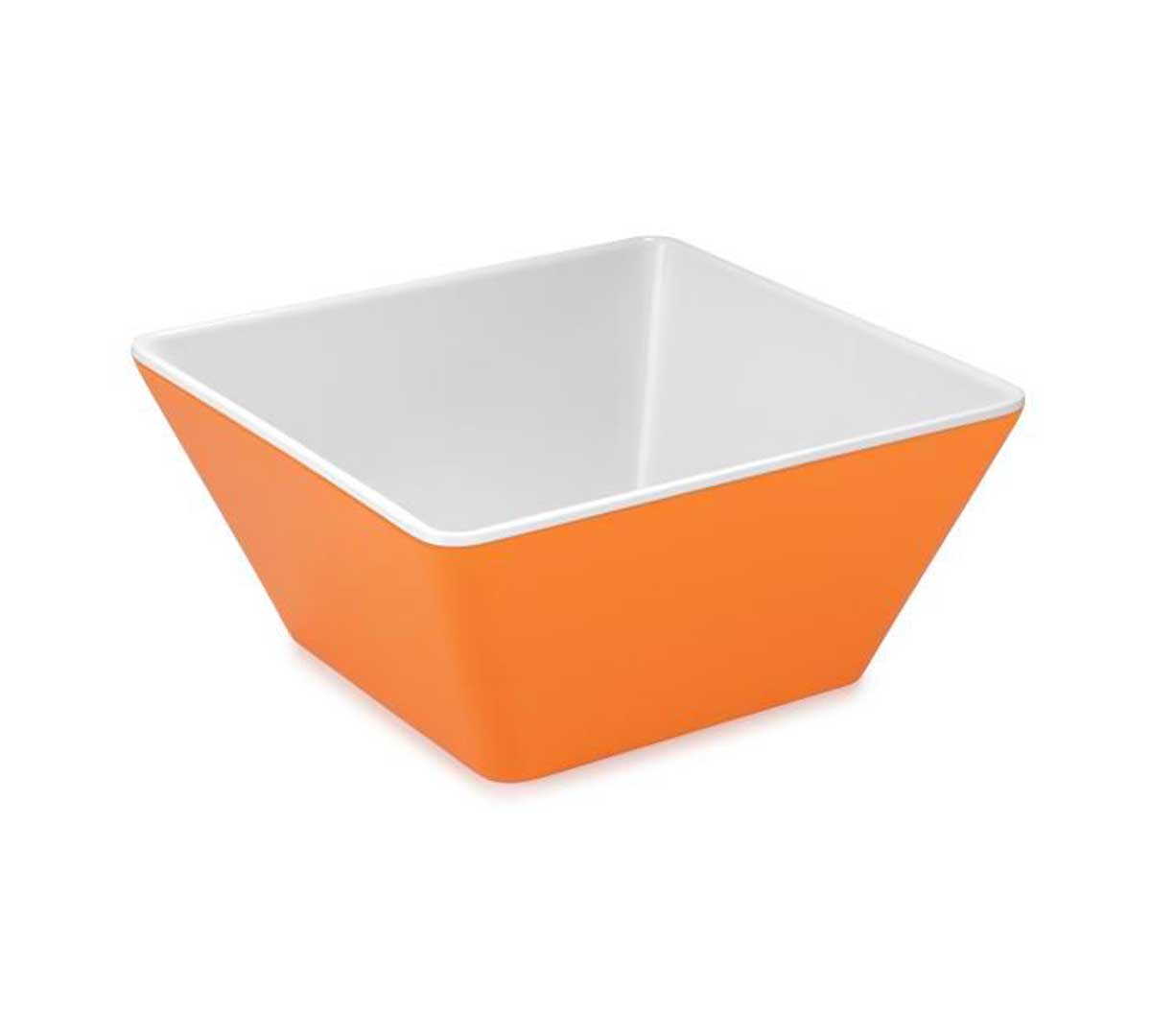 Bol Cuadrado Hondo, con medidas 18 x 18 cm. El interior es de color blanco y el exterior es de color naranja.