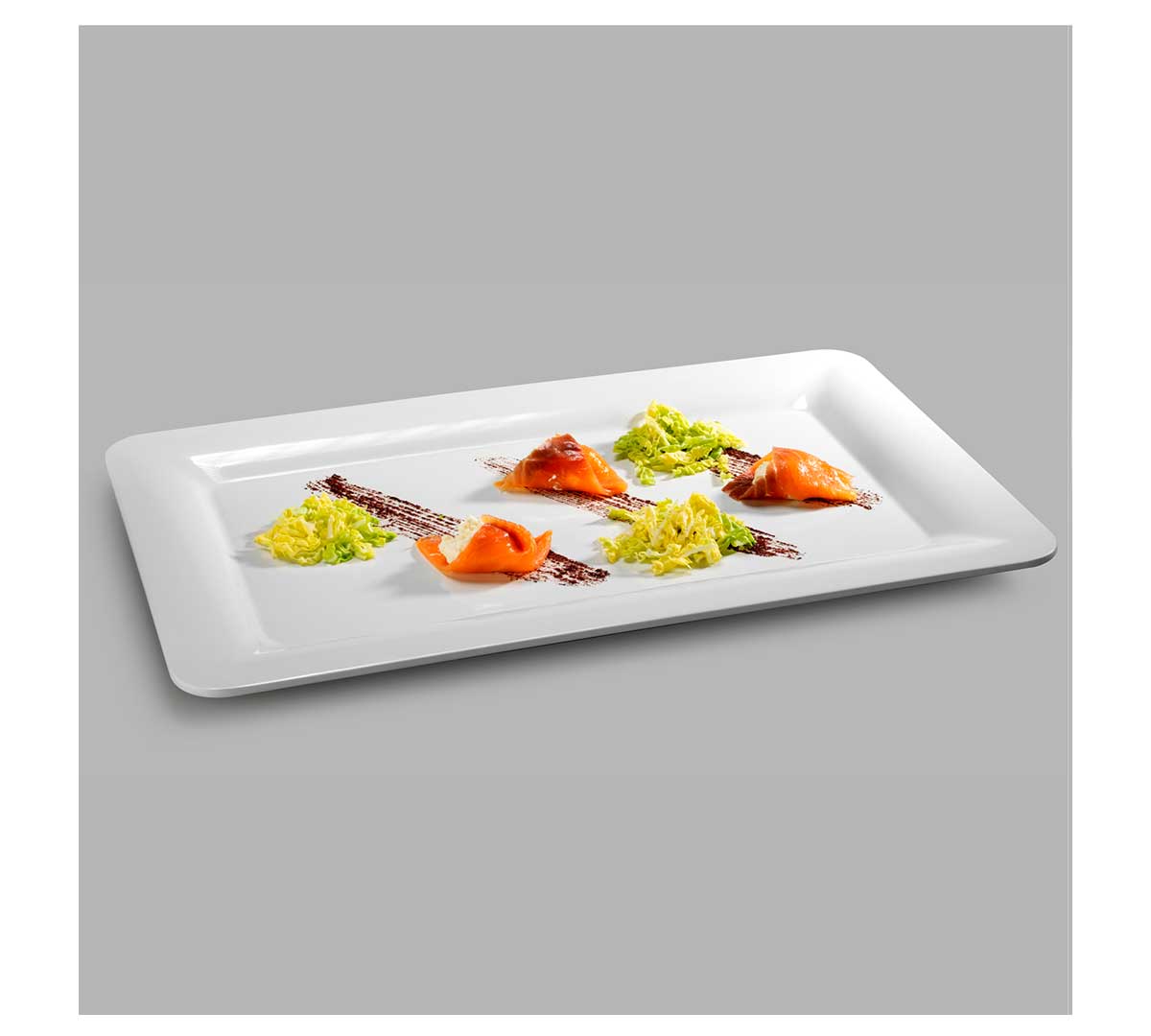 Fuente Rectangular, con medidas 55,7 x 32,2 cm.