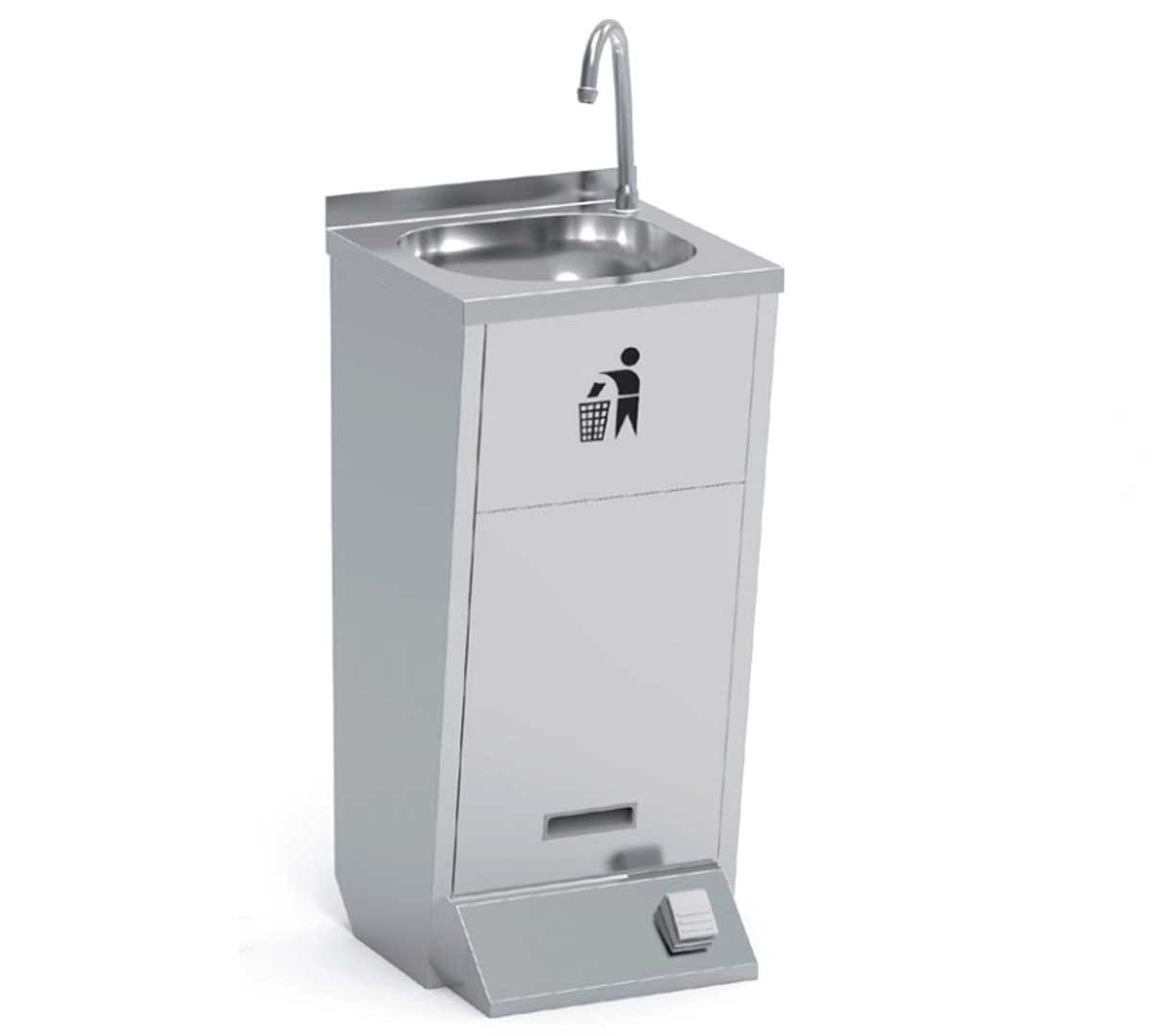 El Lavamanos Autónomo con Pulsador de Pie Eléctrico de Eratos está disponible en dos tamaños. Tiene un diseño autónomo, por lo que no precisa de instalación de toma de agua ni desagüe.