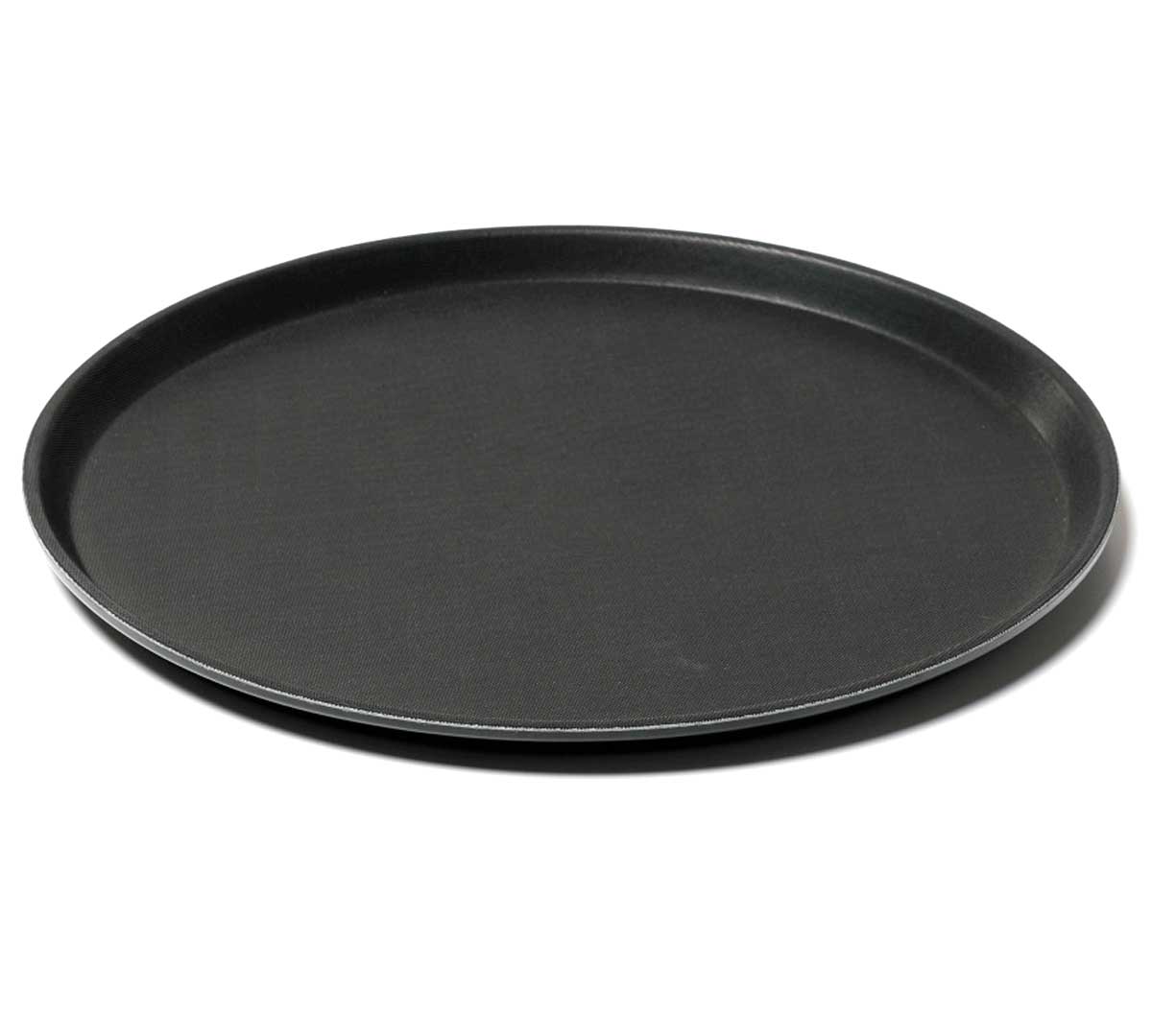 Bandeja redonda y en color negro ligera, indeformable y apta para lavavajillas. Con tratamiento antideslizante. Es ideal para el servicio de mesa. Está disponible con un diámetro de 36 o 40 cm.
