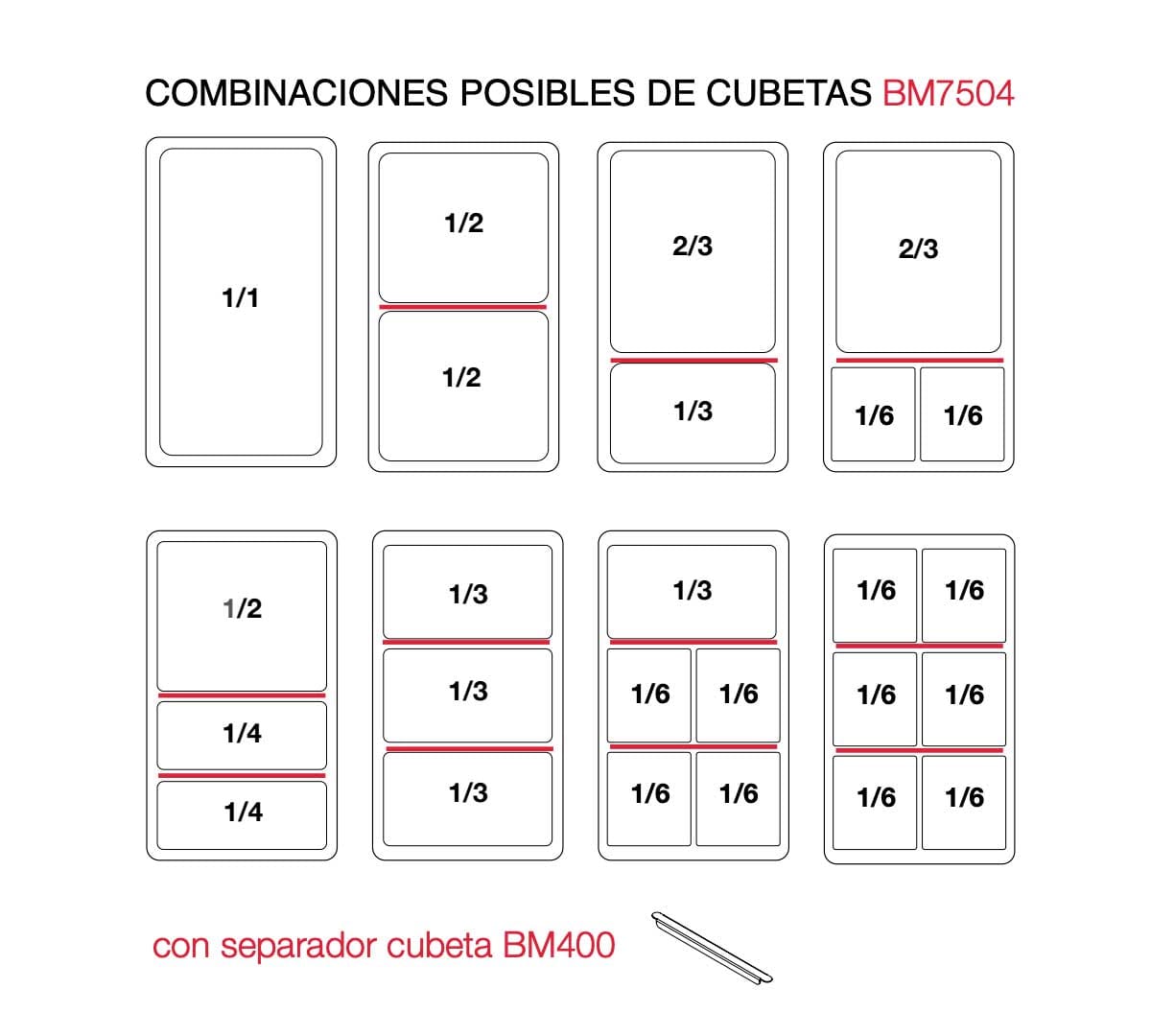 El baño maría BMG7504E pertenece a la serie 750. Está especialmente diseñado para 1 cubeta GN 1/1.