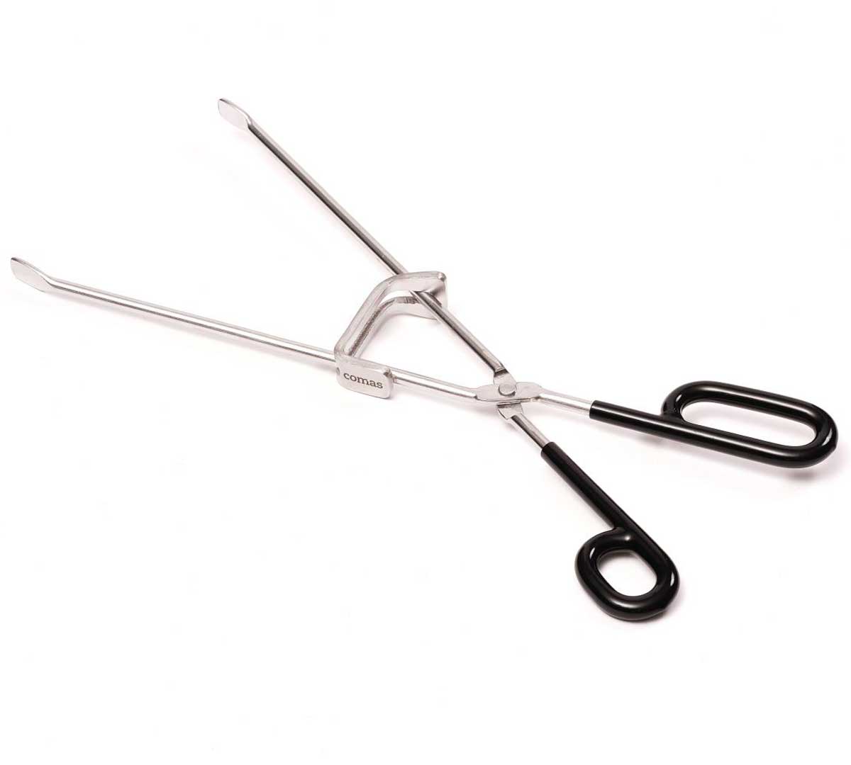 La Pinza BBQ de Comas está fabricada en acero inoxidable con el mango recubierto de PVC.
