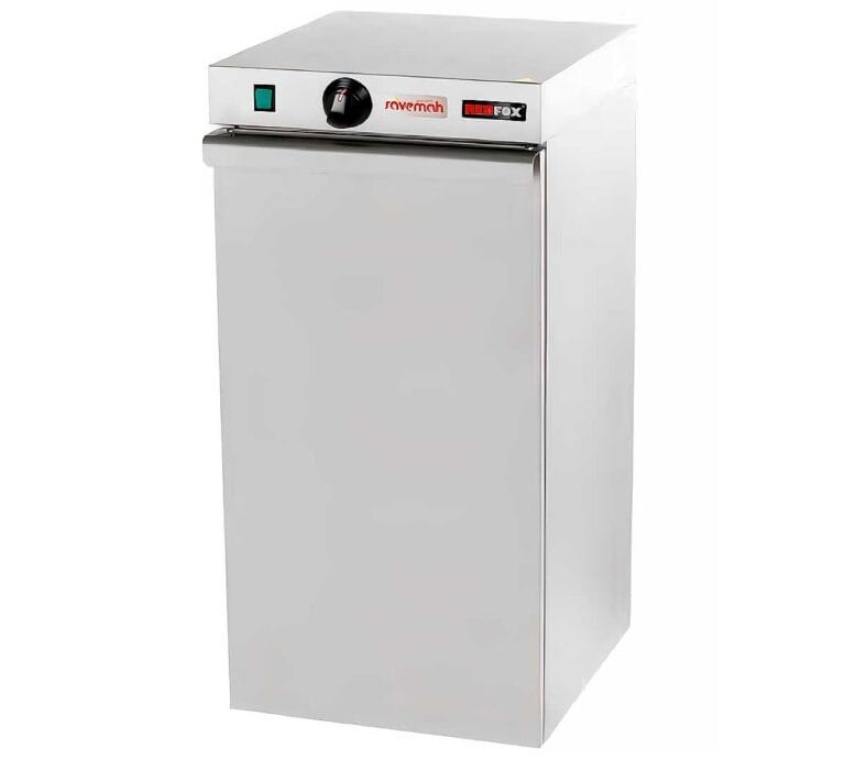 El Calienta Platos Eléctrico FSP 120 de RedFox tiene dos puertas, un estante intermedio ajustable y doble pared con aislamiento. Con un alto de 87 cm y una potencia de 1,5 kW.