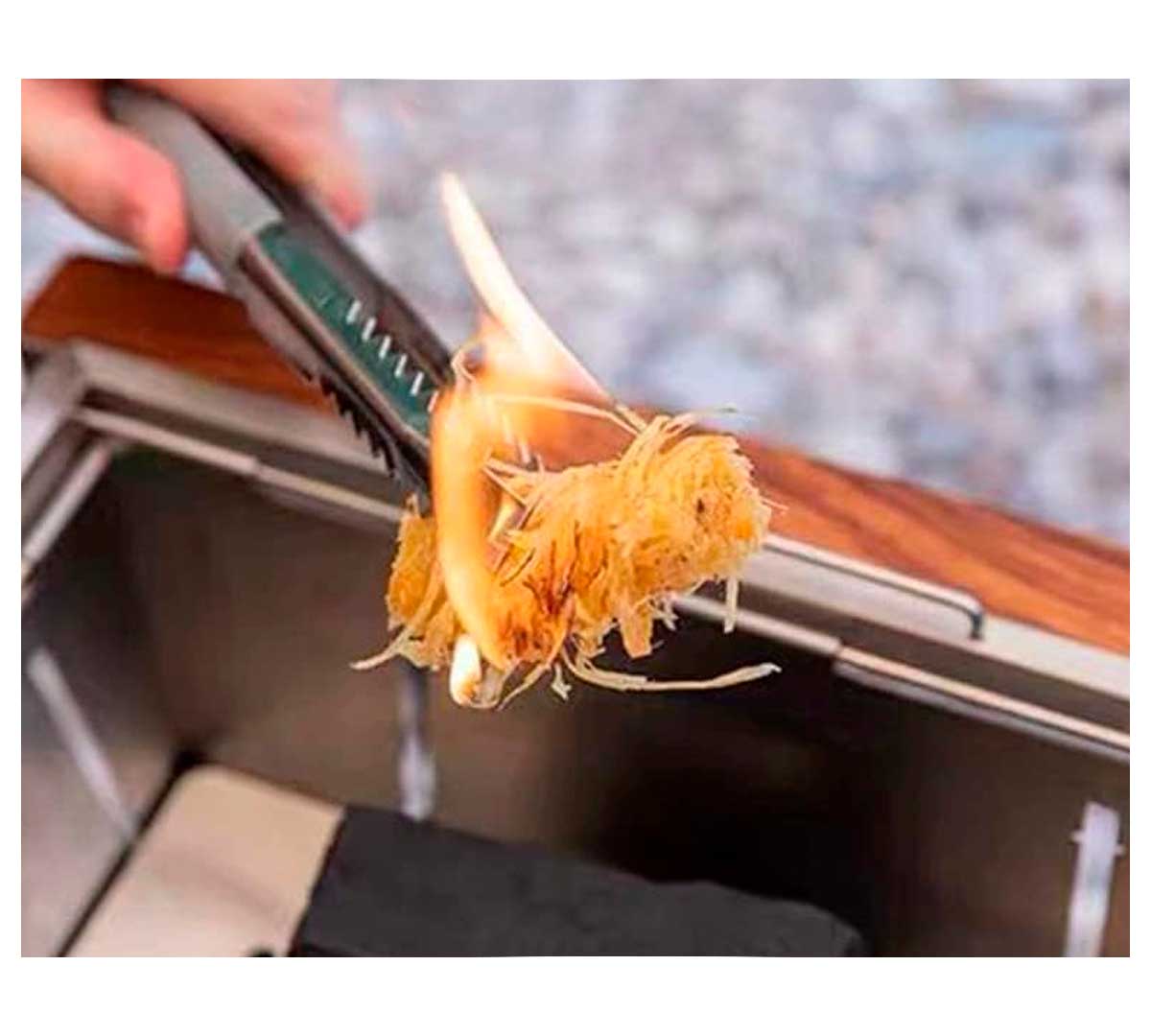 Permite iniciar el fuego rápidamente en trozos de madera y carbón.