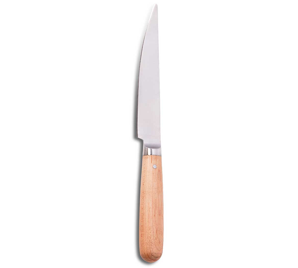 Cuchillo chuletero fabricado en acero inoxidable 420 con un alto contenido de carbono, lo que le permite alcanzar mayor dureza y mayor resistencia al desgaste aunque menor resistencia a la corrosión. Con el mango de madera. Diseñado para cortar carne. Se vende en pack de 6 unidades.