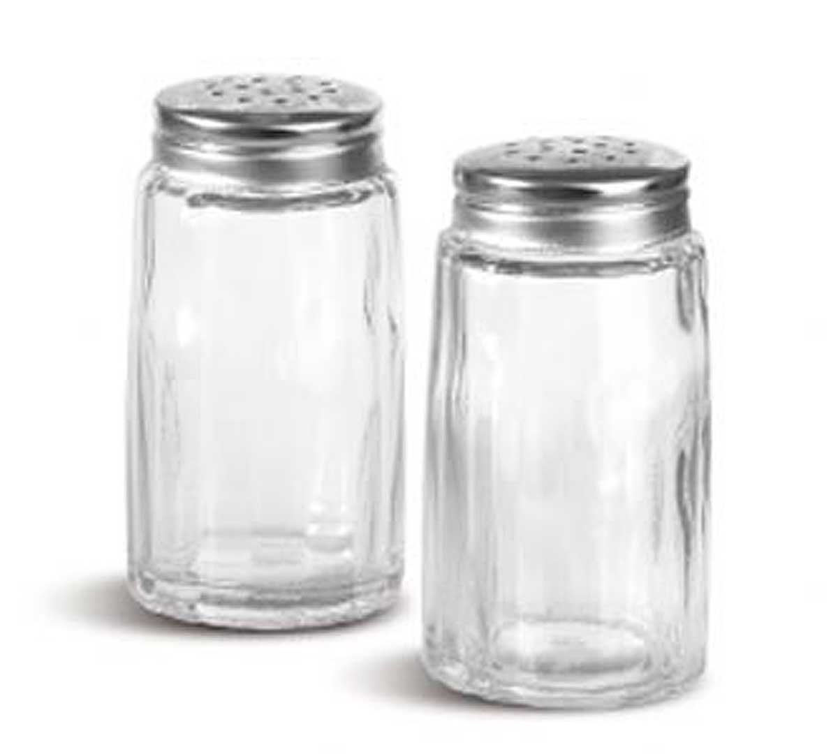 Salero de vidrio ideal para servicio de mesa. Puede ser usado como salero y pimentero. Se vende en pack de 100 blisters; cada blister contiene 2 unidades, haciendo un total de 200 unidades.