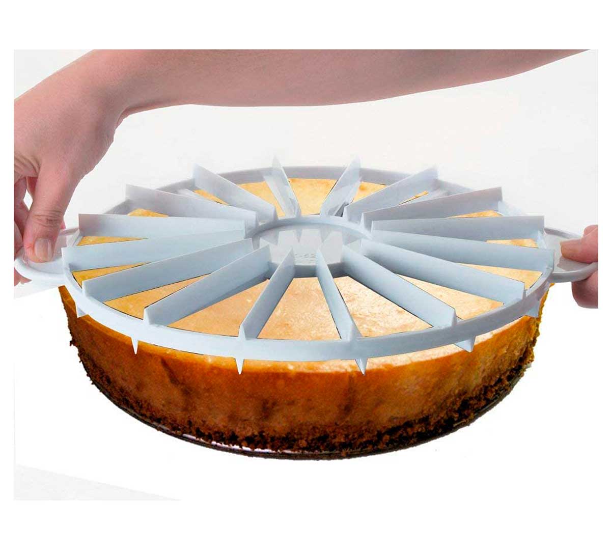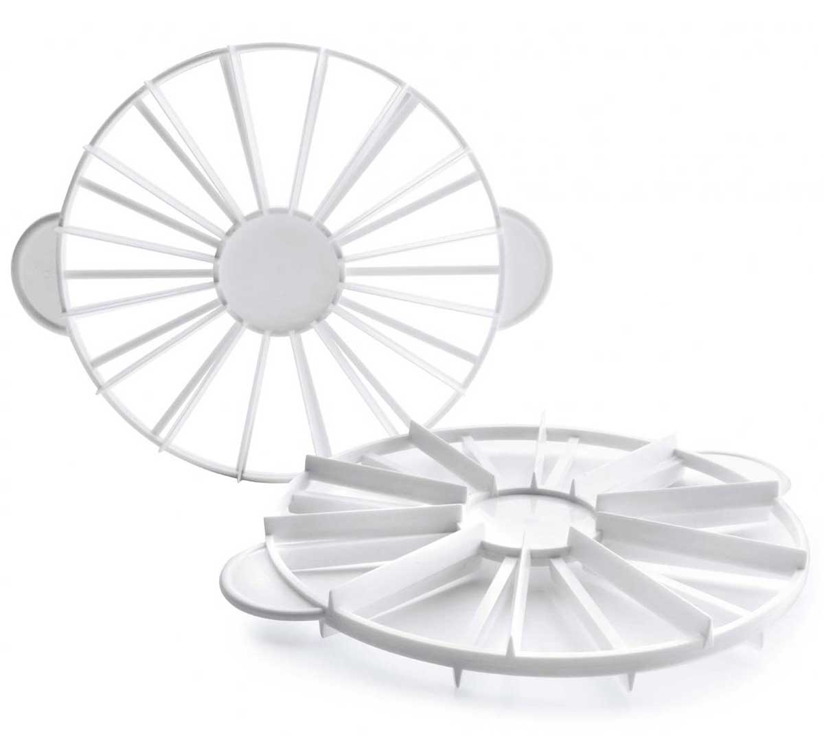 Marcador de tarta fabricado en plástico ABS. Con una pequeña presión sobre el postre, permite marcar tartas o bizcochos. De esta manera, consigue que todas las porciones queden del mismo tamaño. Está disponible en dos modelos con un diámetro de 27 cm y de 10 a 16 porciones.
