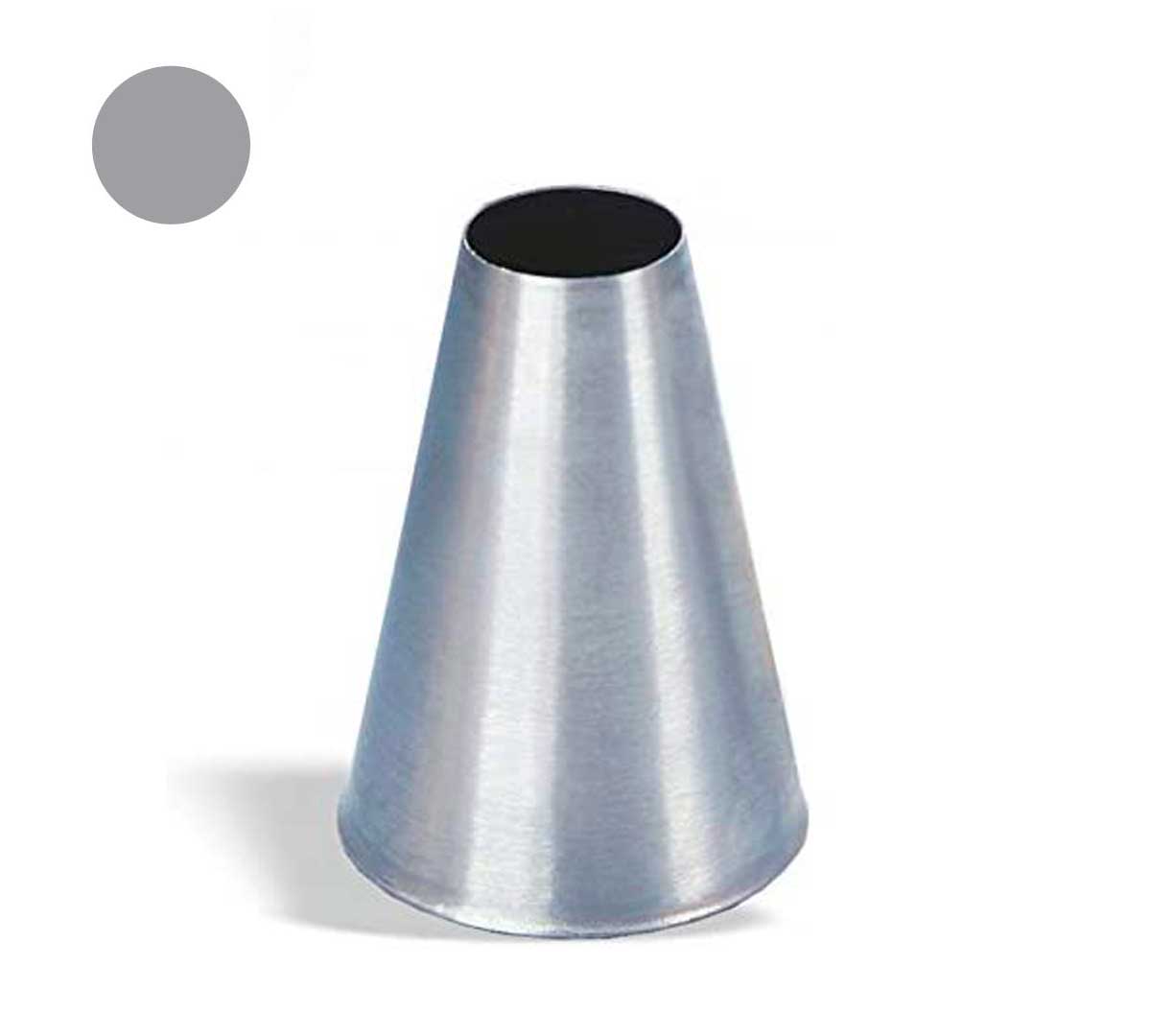 Boquilla de acero inoxidable disponible en 6 modelos con un diámetro de salida de 4 a 14 mm. Este modelo permite realizar diseños con forma redonda. Recomendada para rellenar postres, dibujar contornos, etc. Es apta para todas las mangas pasteleras de Pujadas.