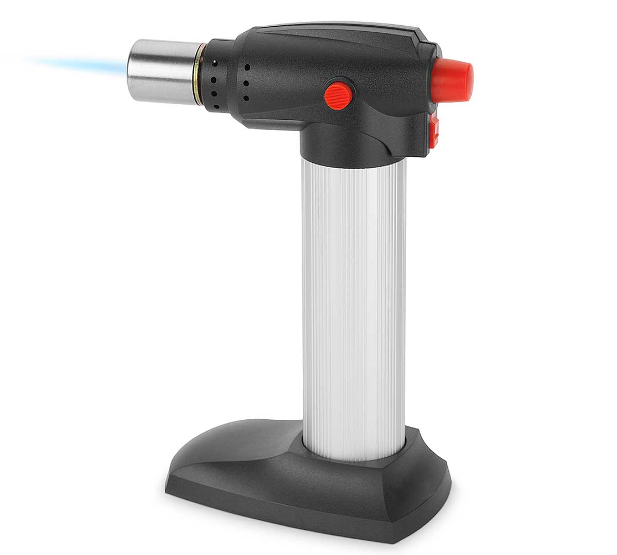 Soplete de cocina con llama fuerte con unas medidas de 13 x 17,5 cm y una duración de 120 minutos. Diseñado para descongelar, esterilizar, caramelizar y para darle el toque final a la creme brulée. Recomendado para pastelería y cocinas profesionales.