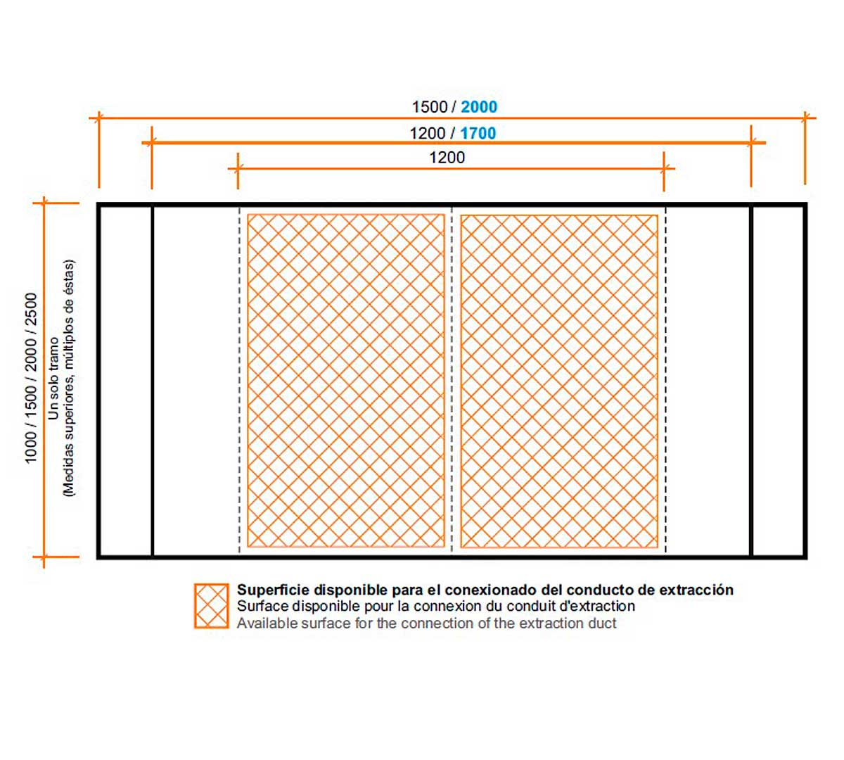 Colector de filtros de humos, vahos y grasas que evitarán la concentración de aceites en conductos y extractor, así como, la salida masiva de estos al exterior.
