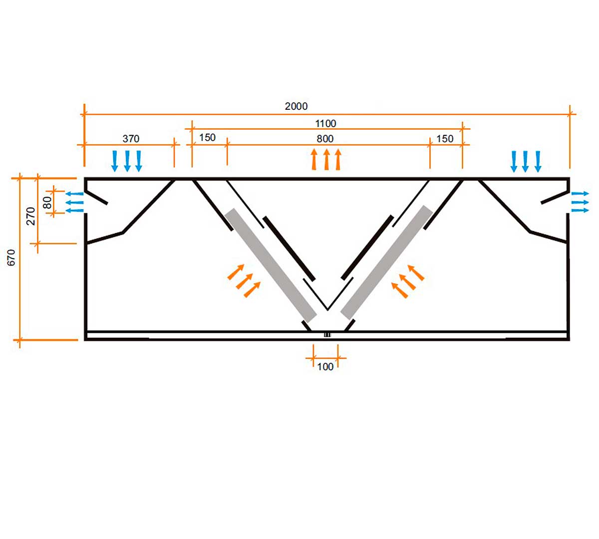 Ángulo de inclinación de los filtros según normativa (entre 45º y 60º) sobre la horizontal.