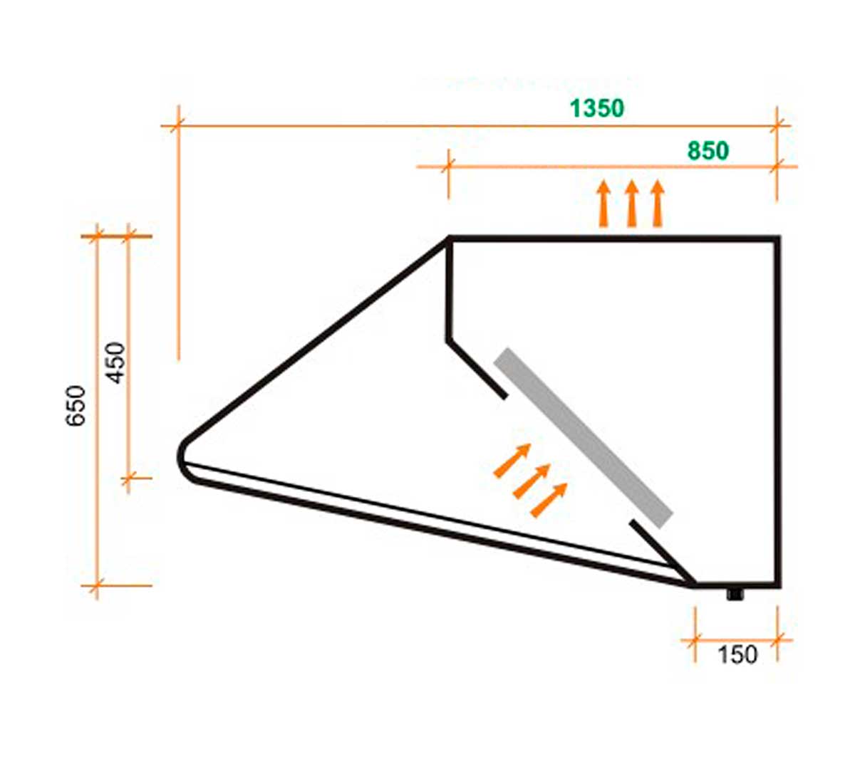 Visera o voladizo en curva para dirigir los vahos y humos hacia el colector de filtros.