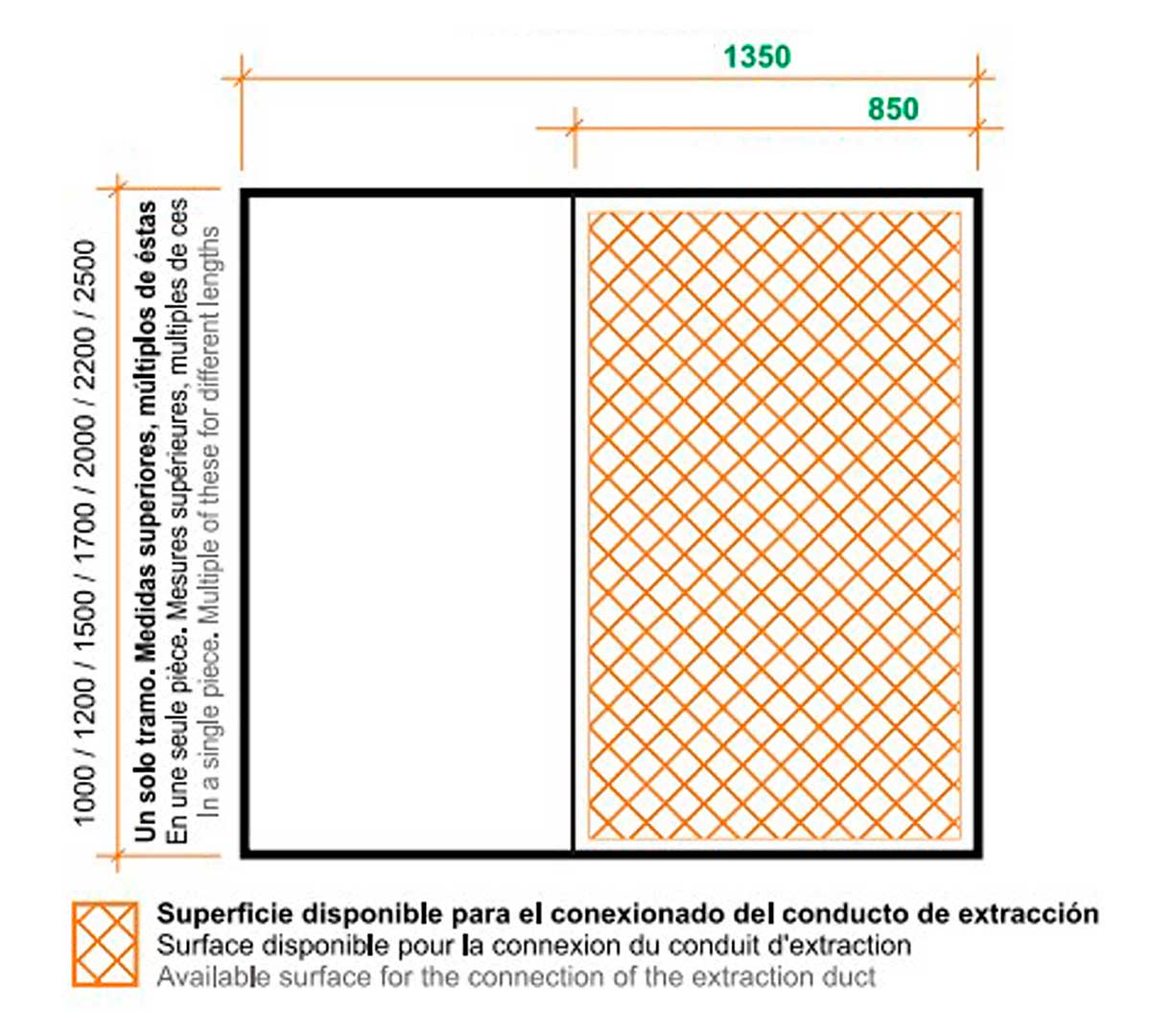 Visera con capacidad para puntuales excesos de grasa y canalización hacia el recoge grasas.