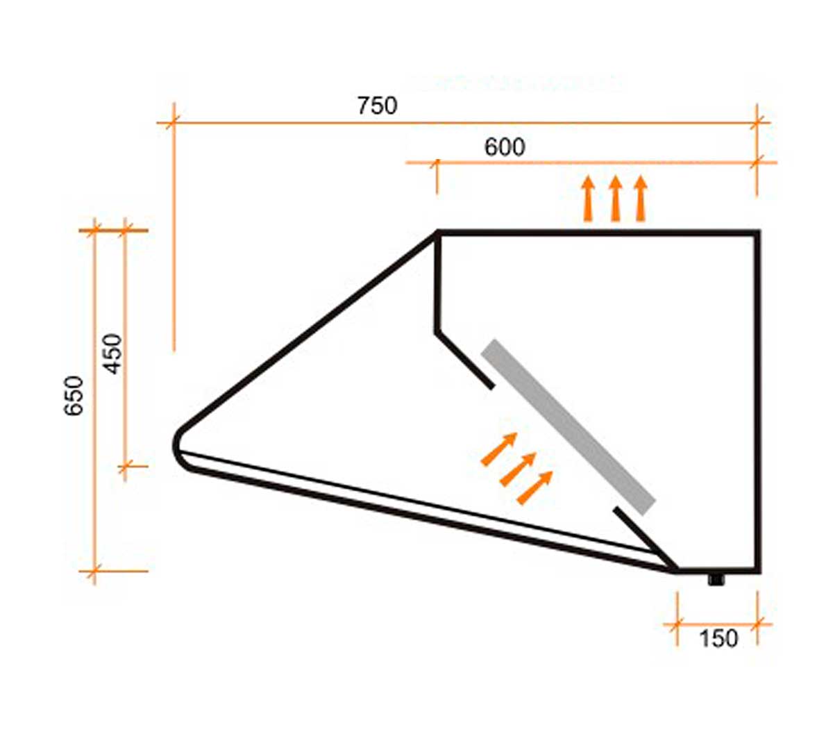 Visera o voladizo en curva para dirigir los vahos y humos hacia el colector de filtros.