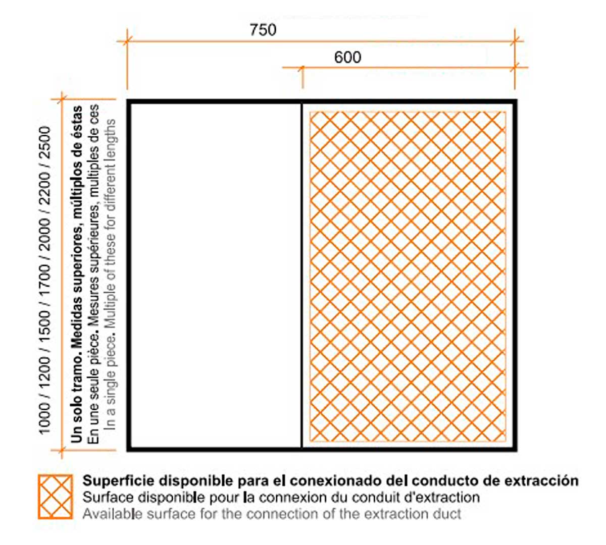 Visera con capacidad para puntuales excesos de grasa y canalización hacia el recoge grasas.