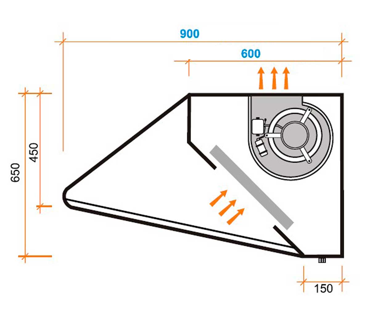 Visera con capacidad para puntuales excesos de grasa y canalización hacia el recoge grasas.