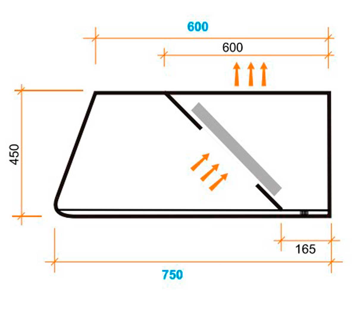visera o voladizo en curva para dirigir los vahos y humos hacia el colector de filtros.