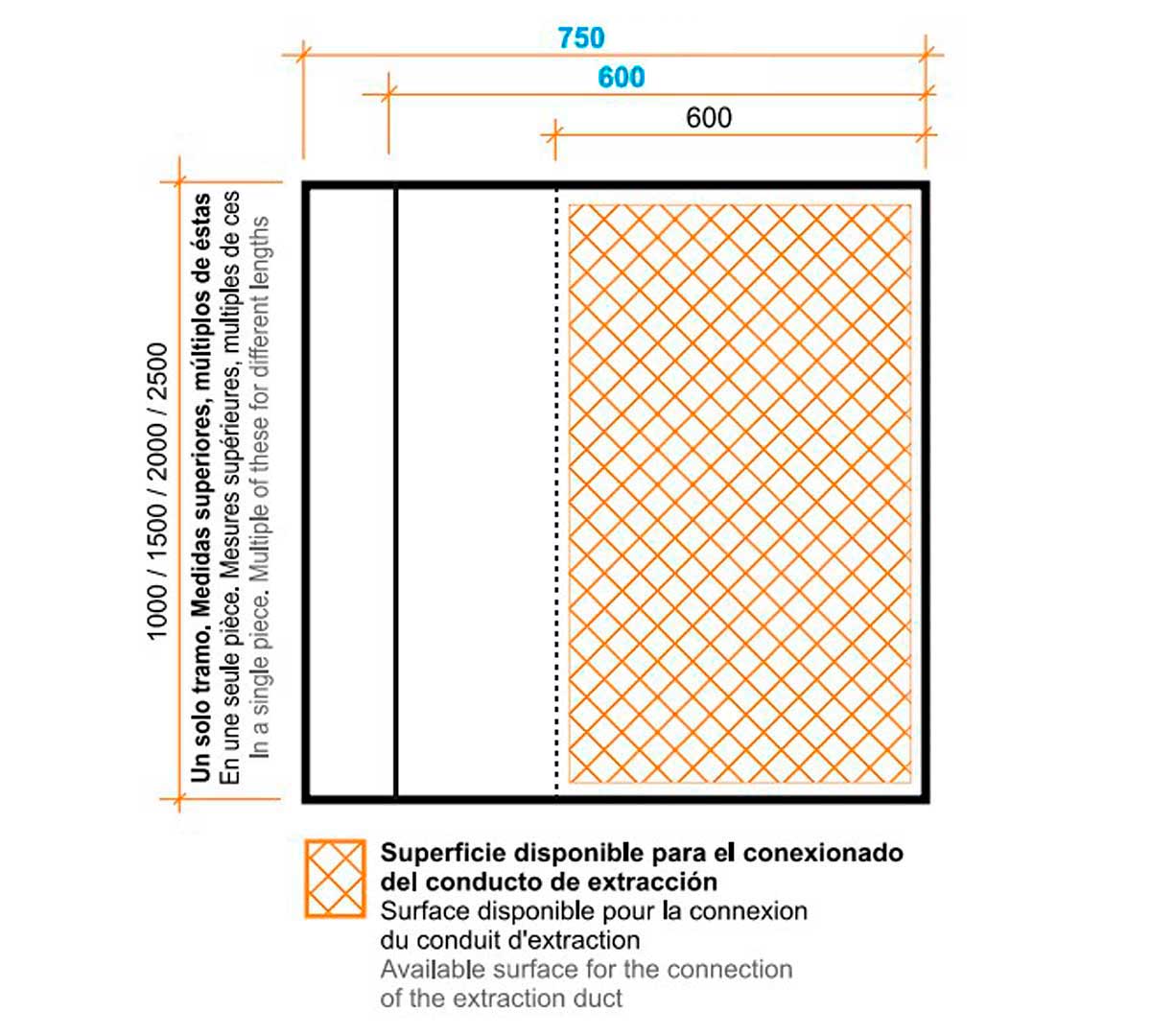 Visera con capacidad para puntuales excesos de grasa y canalización hacia el recoge grasas.