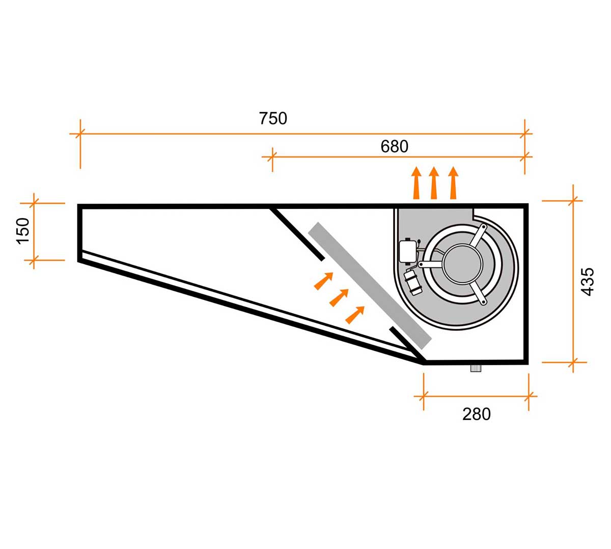 Visera con capacidad para puntuales excesos de grasa y canalización hacia el recoge grasas.
