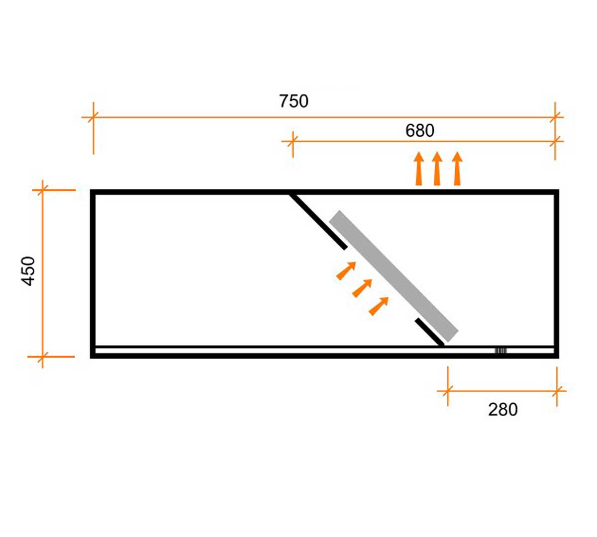 Ángulo de inclinación de los filtros según normativa (entre 45 º y 60 º) sobre la horizontal.