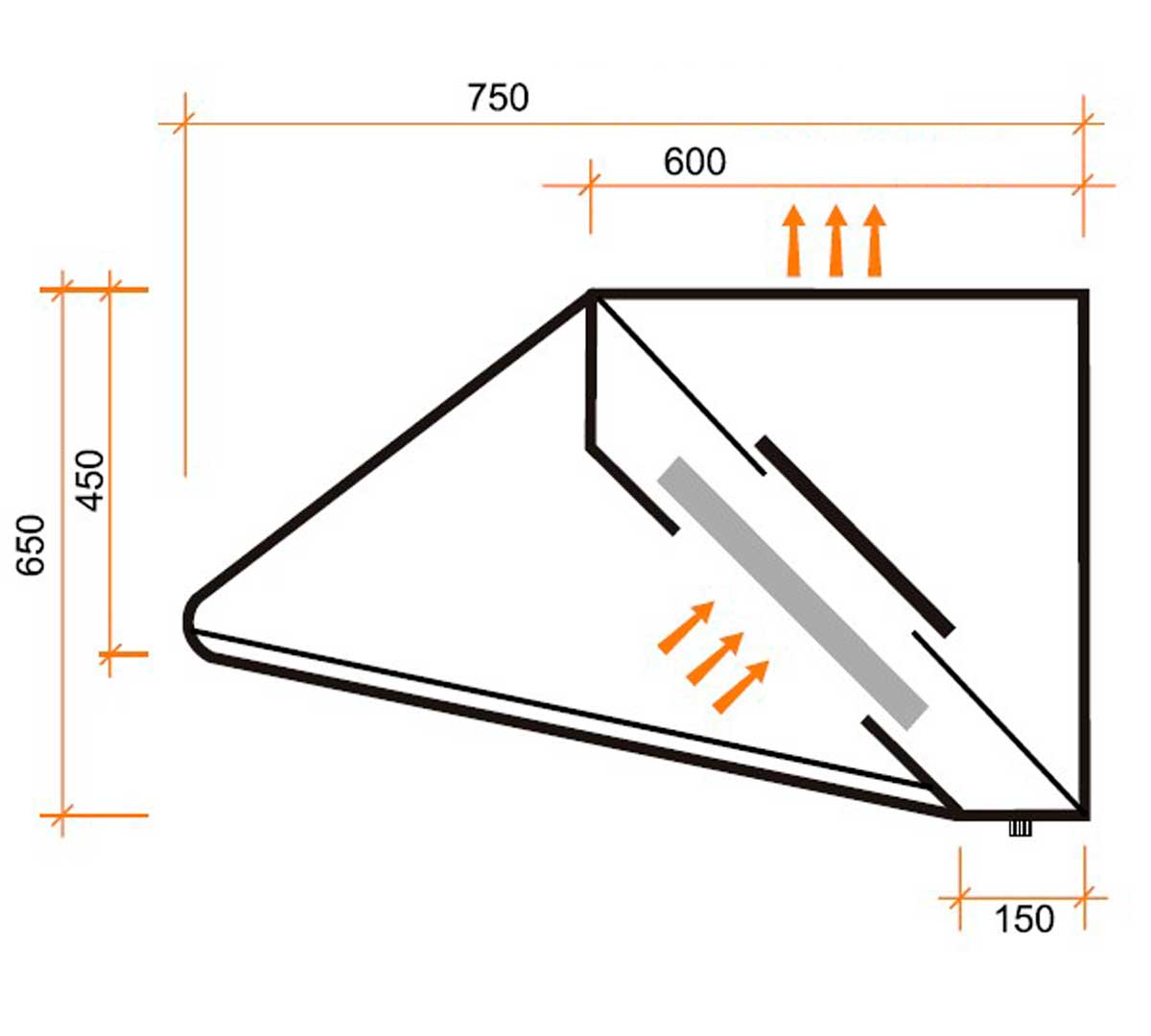 Visera o voladizo en curva para dirigir los vahos y humos hacia el colector de filtros.