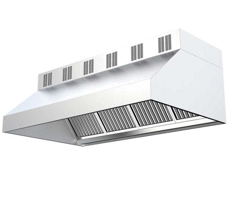 Visera o voladizo en curva para dirigir los vahos y humos hacia el colector de filtros.