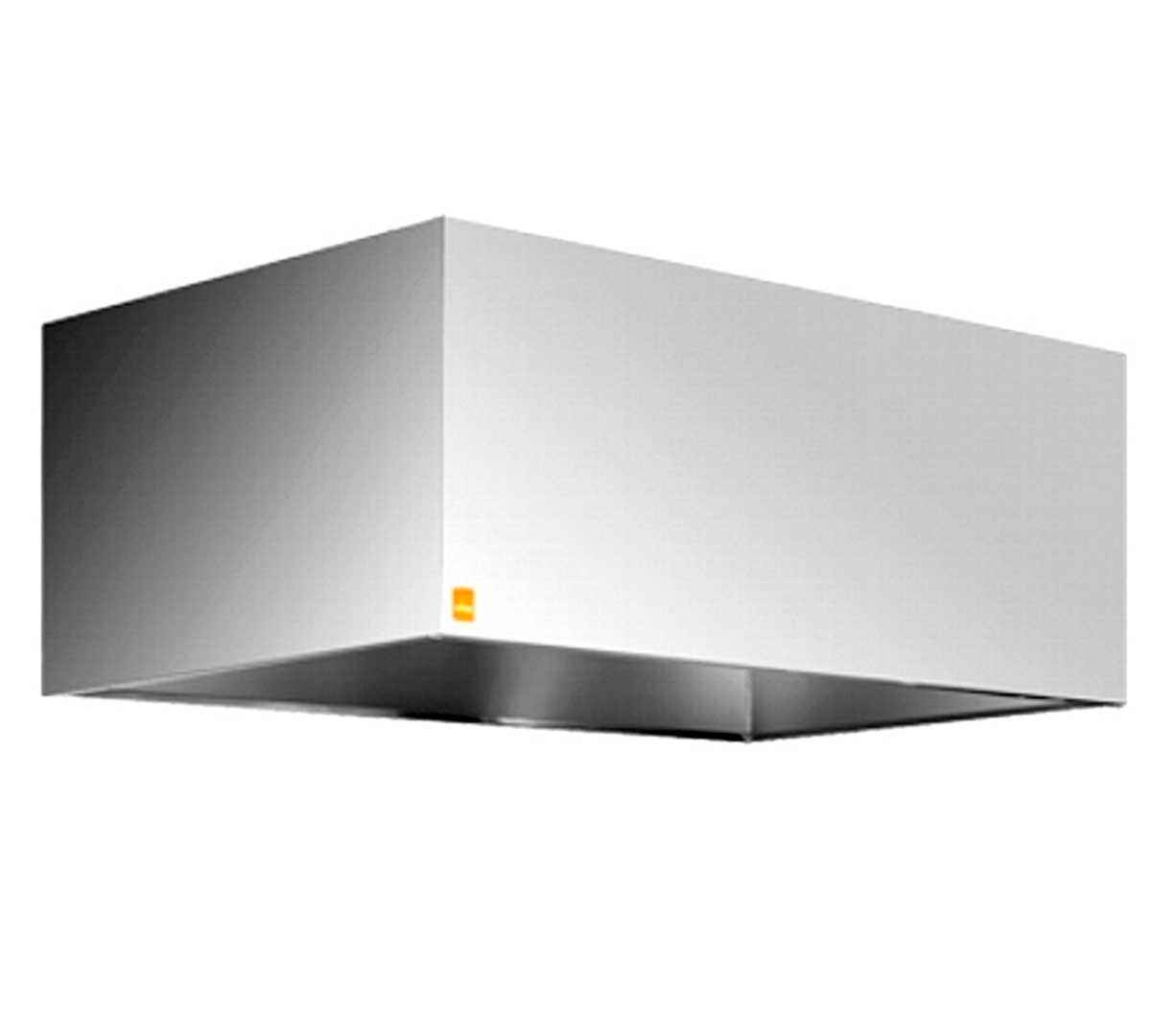 Está completamente fabricada en acero inoxidable, con envolvente de forma cúbica, tiene faldones rectos y puede ser utilizada tanto contra pared como central.